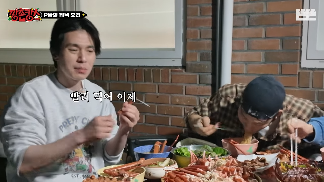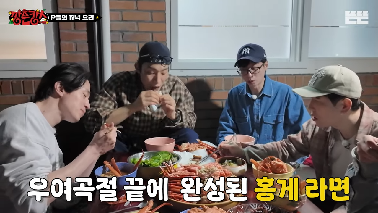 하지만 결국에는 맛있게 완성된 홍게 라면과 삼겹살. 고생 끝에 나오는 진짜 맛있는 한 끼였죠.