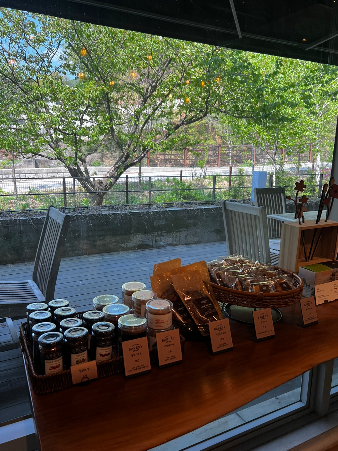 문을 열고 들어서자 노란 구체 전구들이 낮게 매달려 부드러운 금빛을 드리웠다. 진한 커피 향과 함께 구수한 빵 냄새가 포근히 감싸 안고, 투명한 유리 진열장 속에서는 버터의 윤기가 방금 구운 크루아상 위에서 반짝였다. ‘PREMIUM HAND DRIP’라고 적힌 메뉴판 옆에서 직원은 온화한 미소로 주문을 받아 주었다. 창가에 놓인 잼·꿀·원두 패키지들은 작은 정원처럼 아기자기했고, 햇빛이 들창에 부딪혀 반사될 때마다 반짝이는 불씨처럼 테이블 위를 물들였다.