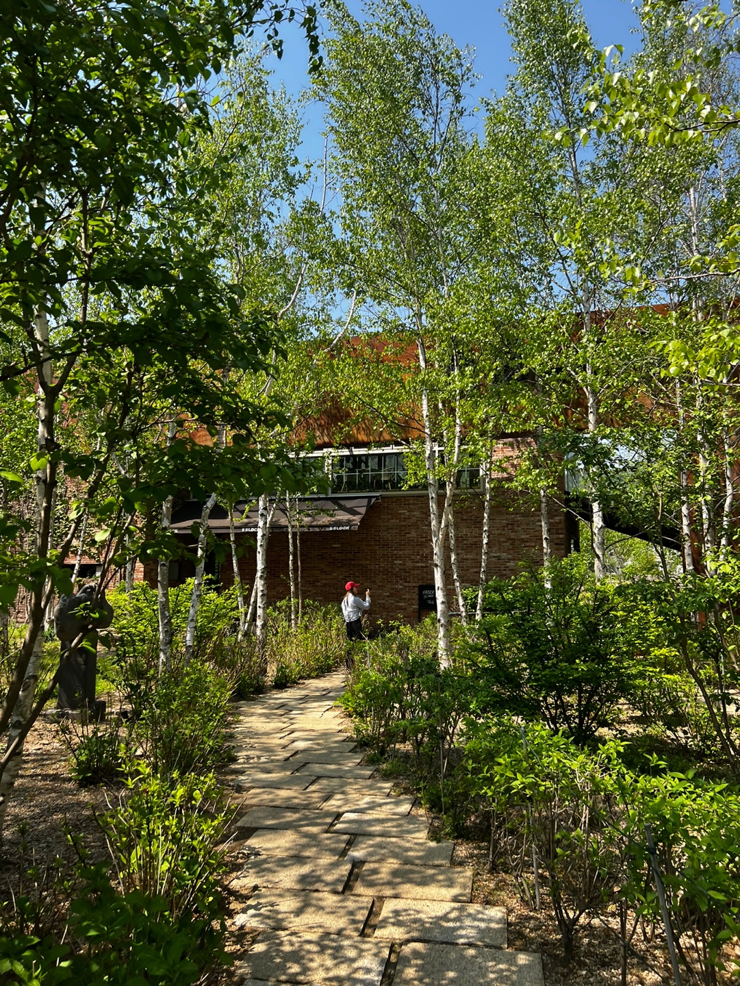 바람이 투명하게 흔들리던 오후, 오래된 컨테이너 간판 속 녹슨 철판 위로 ‘9 BLOCK’이라는 흰 글자가 반짝였다. ‘Time Machine Art Space’라는 문구처럼, 그 순간 나는 잠시 시간을 되감는 기분이 들었다. 가느다란 자작나무들이 길게 늘어선 오솔길을 따라 걸음을 옮기자, 은빛 잎새 사이로 햇살이 쏟아지고, 발끝에서는 나무 껍질 향이 은은히 스며들었다. 길 끝에 숨어 있던 붉은 벽돌 건물이 모습을 드러냈고, 빨간 모자를 눌러쓴 여행자 한 사람이 셔터를 누르며 풍경을 포개고 있었다.