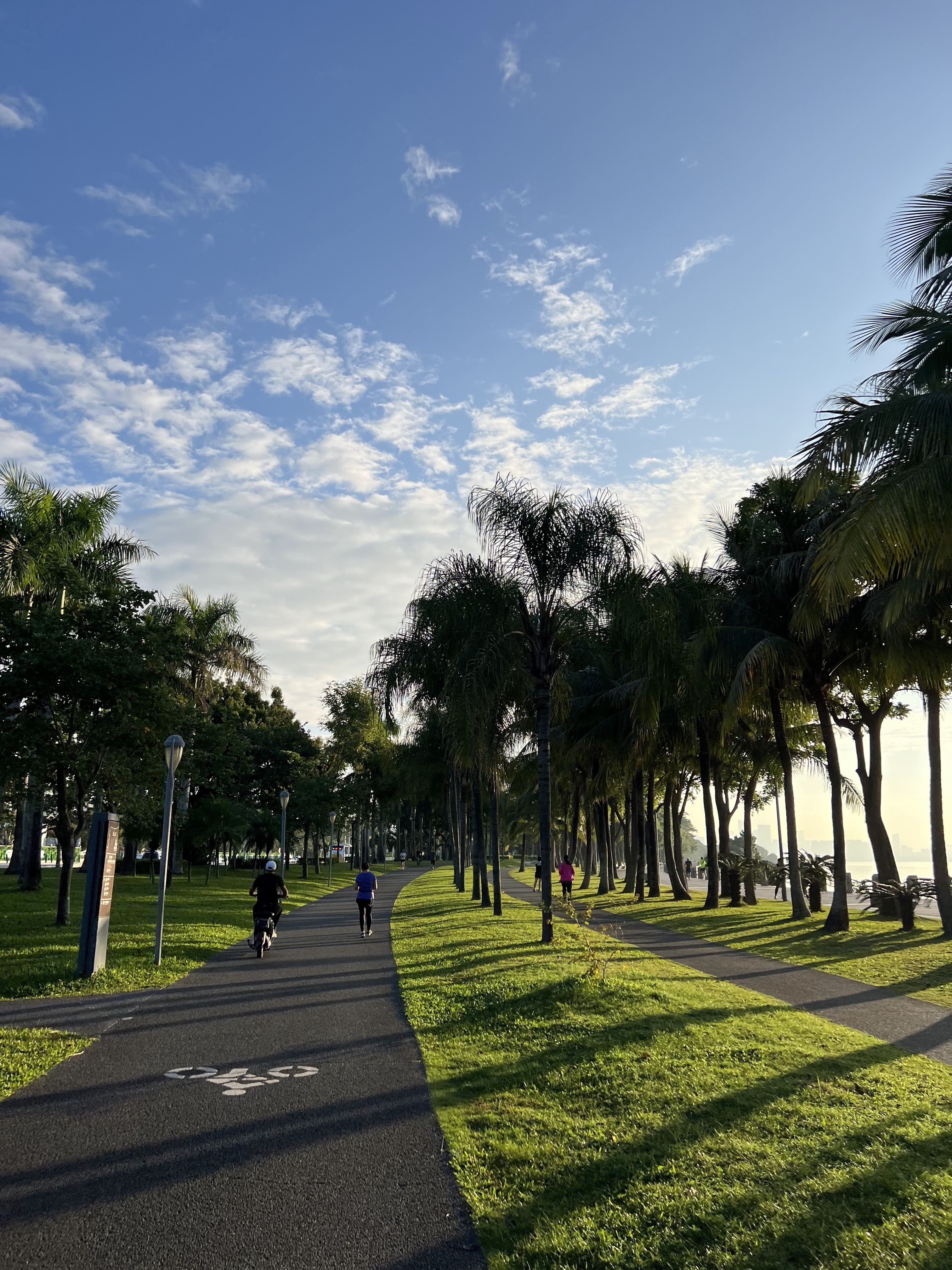 조깅 트랙 옆으로는 자전거 전용 도로가 병행되어 있으며, 따로 마련된 **자전거 대여소(共享单车)**를 통해 즉시 라이딩도 가능하다.