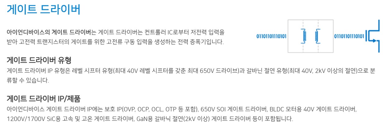 아이언 디바이스의 게이트 드라이버 / 출처 : 아이언디바이스