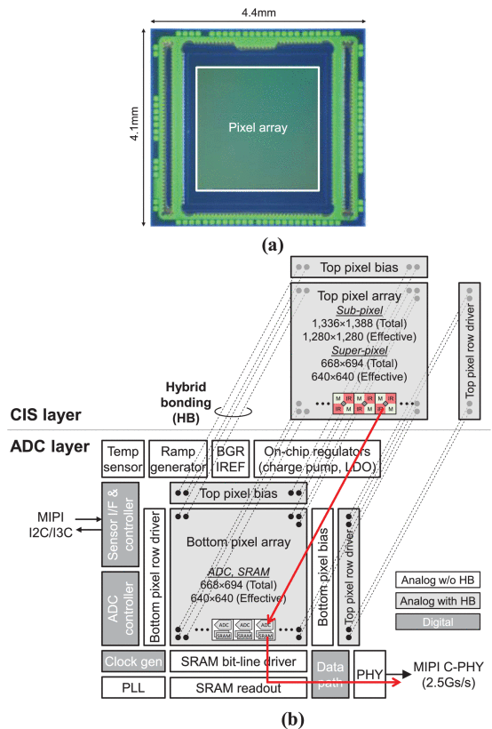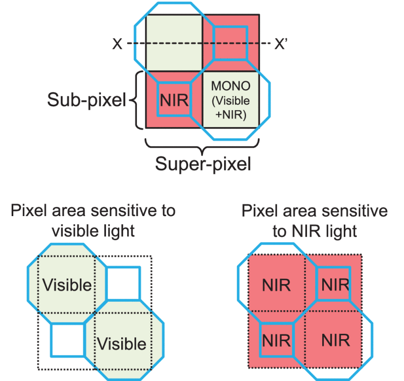 브릴닉스의 새로운 센서는 2×2 배열의 MONO 및 NIR 서브픽셀을 대각선으로 배치한 슈퍼픽셀 구조를 채택했다. 각 서브픽셀에는 비균일 마이크로렌즈가 적용되어 가시광선과 근적외선에 대한 감도를 향상시킨다. 또한, 각 슈퍼픽셀은 인픽셀 아날로그-디지털 변환기(ADC)와 두 개의 10비트 SRAM 뱅크에 연결되어 듀얼 채널 글로벌 셔터 작동을 가능하게 한다.