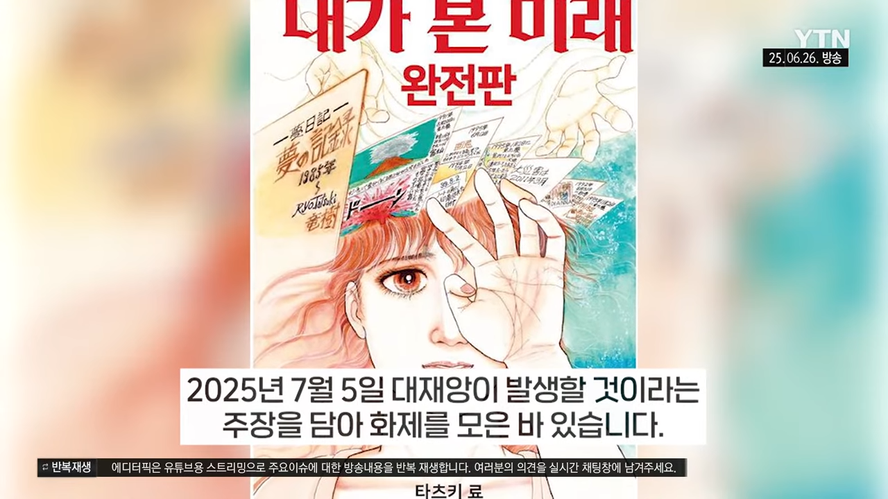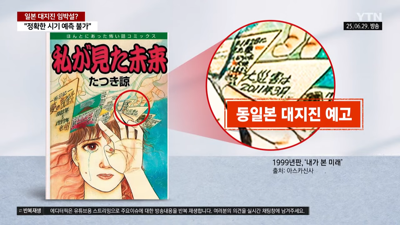 1999년 발표된 다쓰키 료의 만화 『내가 본 미래』는 작가의 예지몽을 기반으로 구성되었습니다. 이 작품은 2011년 동일본 대지진을 정확히 예언했다는 평가를 받으며, 최근 개정판에서 “2025년 7월 5일 일본 대지진”이라는 문구가 추가되어 다시 큰 논란을 불러일으켰습니다. “내가 본 미래”와 “2025년 7월 지진” 키워드는 현재 일본 내외에서 급속히 확산 중입니다.