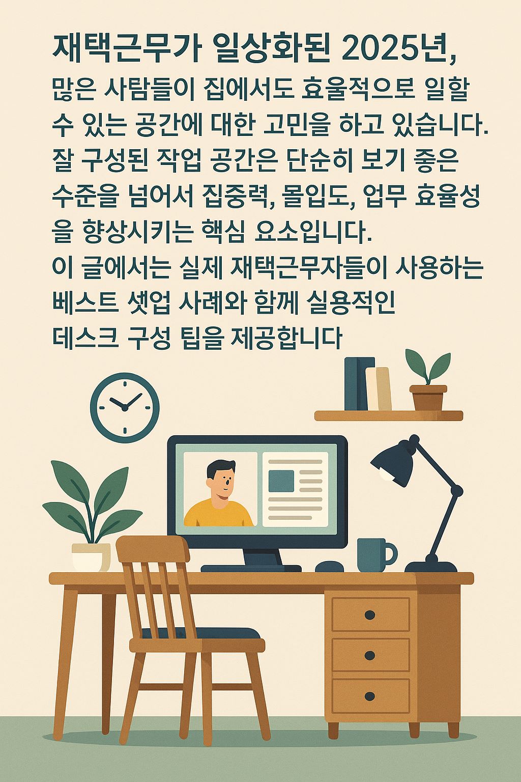 재택근무가 일상화된 2025년, 많은 사람들이 집에서도 효율적으로 일할 수 있는 공간에 대한 고민을 하고 있습니다. 잘 구성된 작업 공간은 단순히 보기 좋은 수준을 넘어서 집중력, 몰입도, 업무 효율성을 향상시키는 핵심 요소입니다.