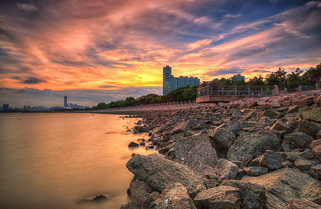 산책과 자연을 좋아하신다면 **심천 베이 공원(Shenzhen Bay Park)**을 추천해요. 해안선을 따라 이어진 산책로와 자전거 길이 너무 잘 되어 있어요. 맹그로브 숲과 해질 무렵의 노을은 정말 장관입니다. 도시 속 힐링이 필요할 때, 심천 가볼만한 곳 중 이만한 곳이 없어요.