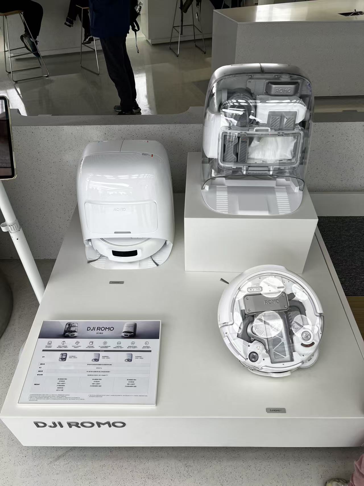 무엇보다 의외였던 건 DJI가 만든 로봇 청소기 'DJI ROMO'였다. 드론 전문 회사에서 가정용 로봇 청소기라니? 하지만 알고 보니 이 청소기에도 DJI의 핵심 기술인 라이다 센서와 자율 주행 기능이 들어가 있다고 한다. 외형도 깔끔하고, 투명 버전으로 내부 구조까지 전시해 둔 점이 인상 깊었다.