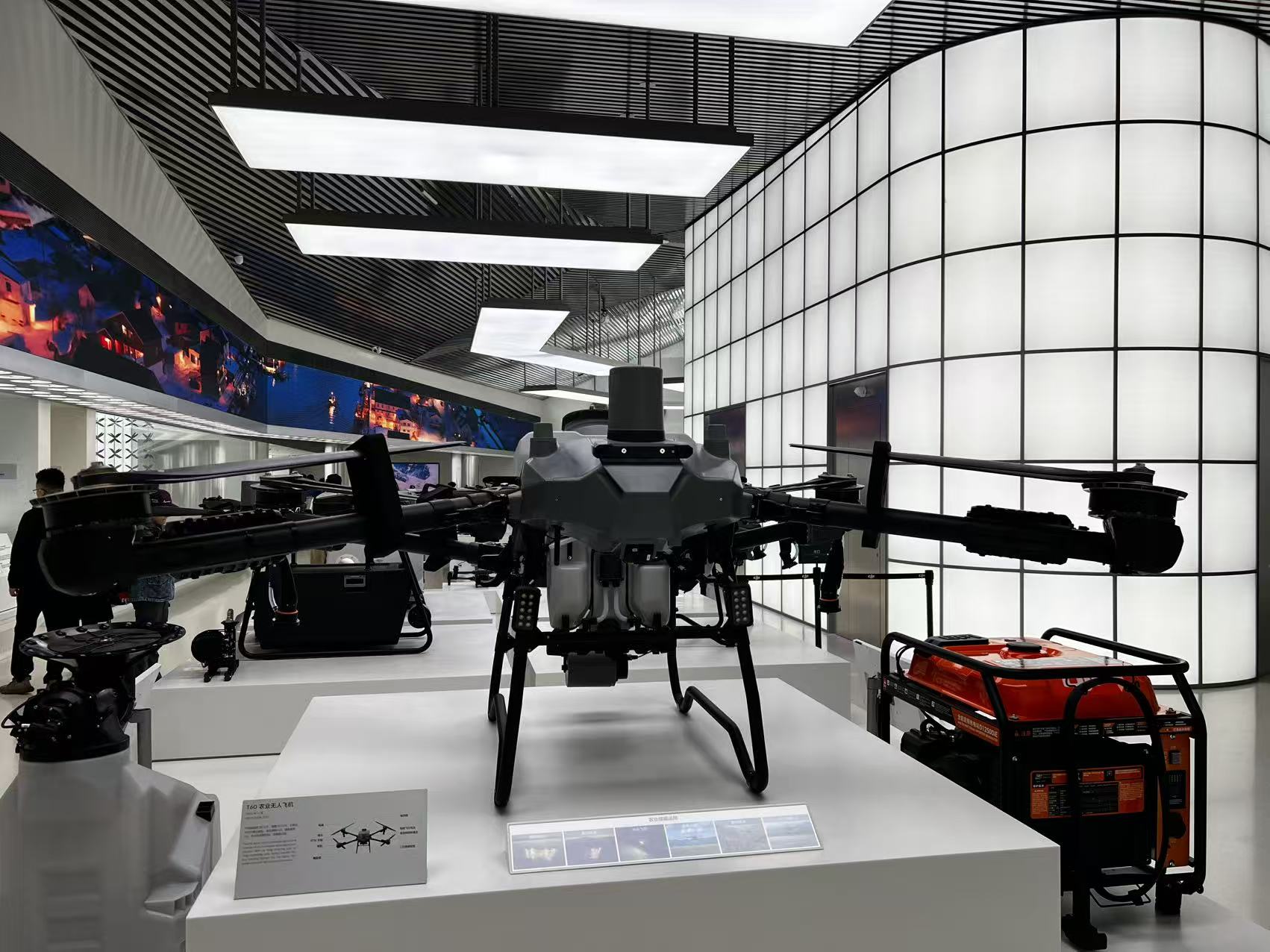 농업용 드론도 꽤 인상 깊었는데, 물탱크나 분사 장치가 장착되어 있고, 별도의 발전기와 연결되어 있어 실제 사용 환경을 잘 재현해놨다. 비료나 농약 살포에 최적화된 구조라 농가에서도 유용하게 쓰일 수 있겠다는 생각이 들었다.