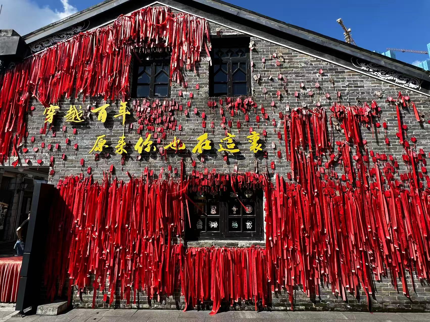 벽면 가득 매달린 붉은 리본들은 소원을 적은 것인지, 바람에 살랑이며 나풀거렸다. 그 아래로는 누군가의 소망이, 간절함이, 혹은 잊힌 사랑이 적혀 있을지도 모르겠다. 노란 글씨로 새겨진 문구는 이렇게 말하고 있었다. "백 년을 넘어, 당신은 여전히 이곳에 있습니다." 참 묘하게도, 낯선 도시의 이 작은 마을에서 나의 마음도 그렇게 머물고 있었다.
