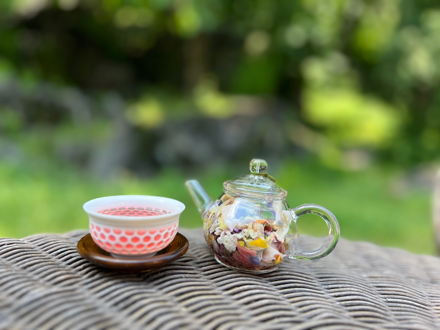 잎과 꽃잎이 어우러진 찻주전자 속에는 봄과 여름, 그리고 나의 소소한 기쁨이 담겨 있었다.