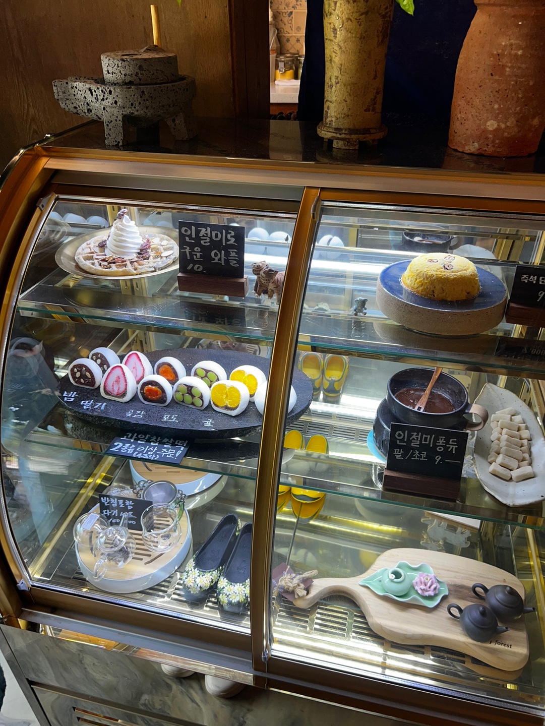 디저트 진열대 앞에서는 눈이 먼저 배불렀다.