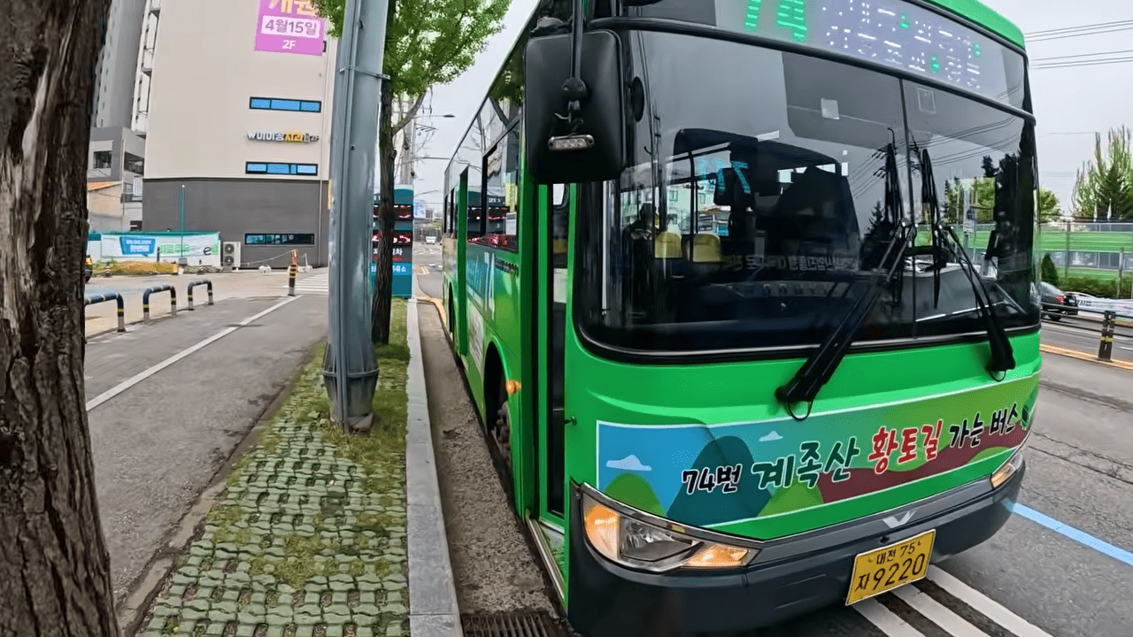 이후 반대편 정류장에서 버스 74번으로 갈아타고 10분 정도 더 이동하면, 장동구 숲속욕장 공원 정류장에 도착합니다. 여기서 도보 5분이면 드디어 맨발 황톳길 입구입니다.