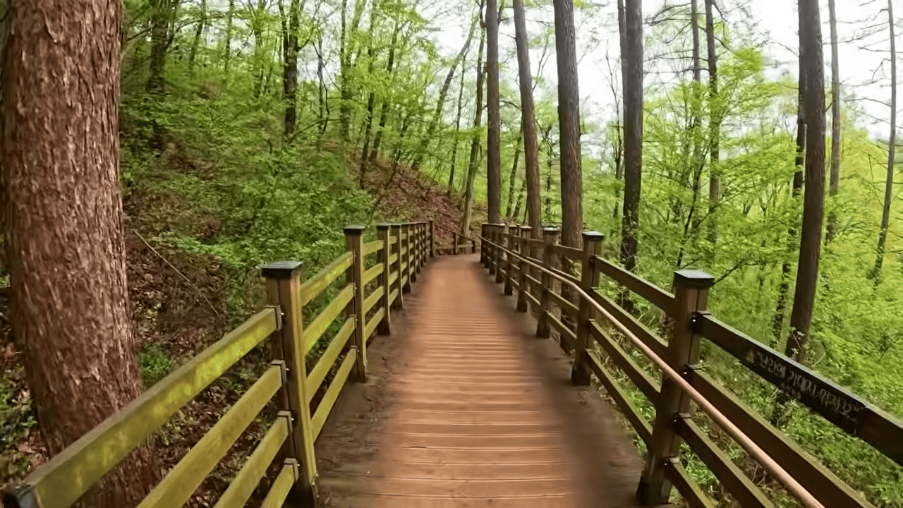 내려오는 길엔 데크 산책로가 잘 정비되어 있어 누구나 안전하게 걸을 수 있습니다. 황톳길 외에도 다양한 트레킹 코스가 있으니 체력에 따라 선택하세요. 걷기 좋은 국내 여행지 중 하나로 손꼽히는 이유입니다.