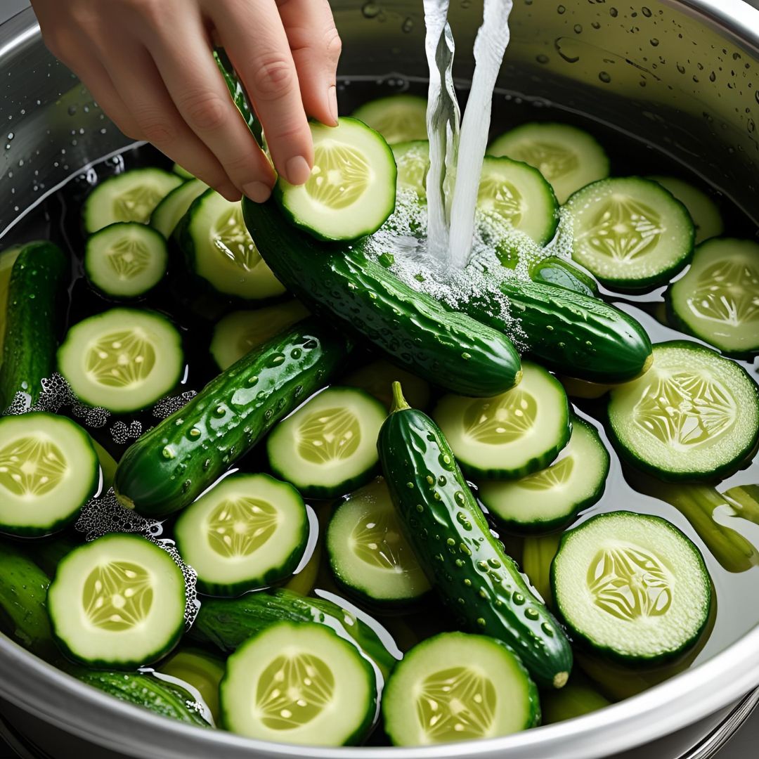절이는 과정에서 찬물을 부어 오이를 적셔줍니다. 이는 이물질 제거와 동시에 염도 조절에 도움이 되며, 오이가 너무 짜지 않도록 해줍니다.
