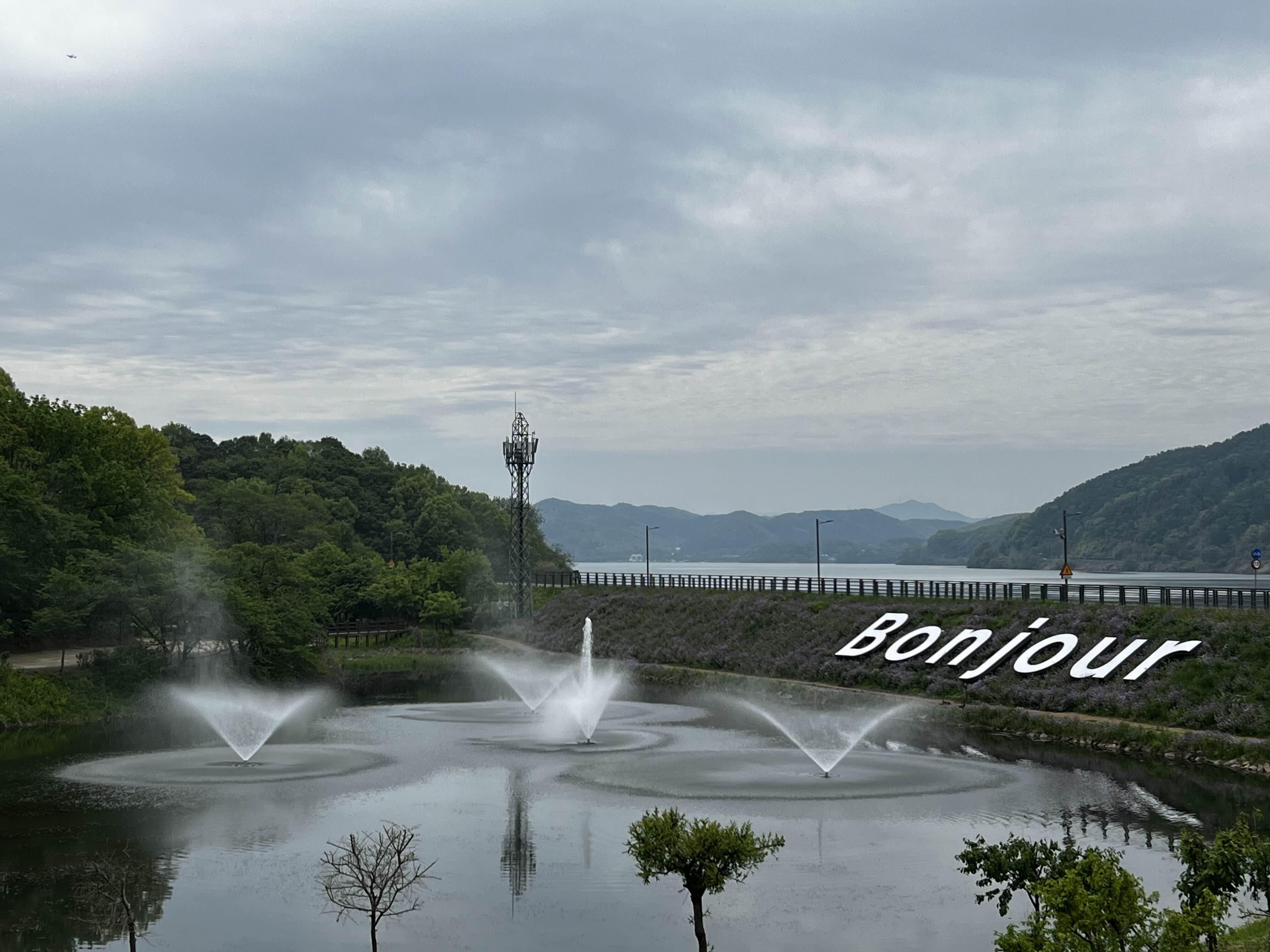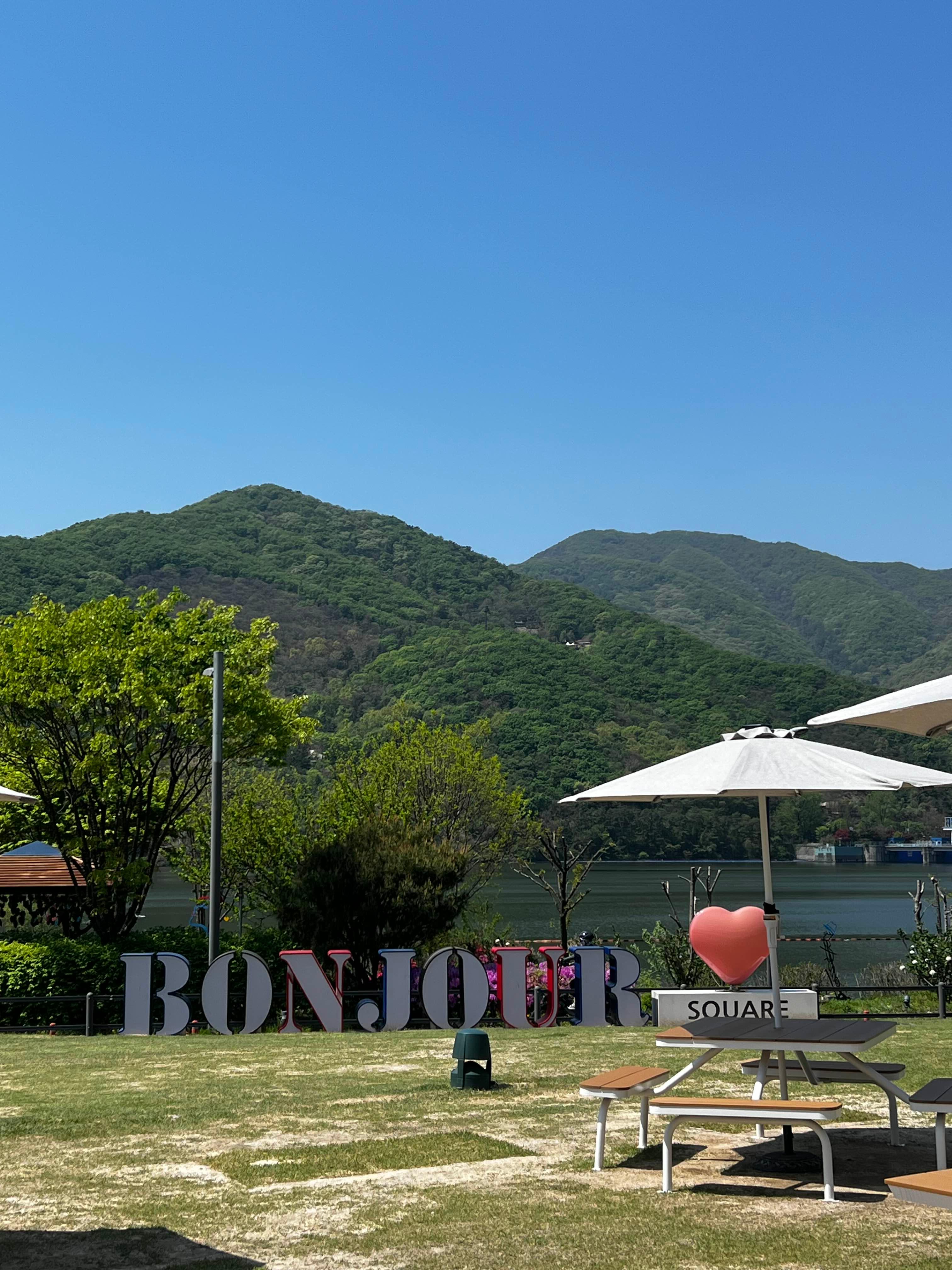 멀리 둔덕 위에 새겨진 커다란 글씨 “Bonjour”는 이 공간을 더욱 특별하게 만든다.